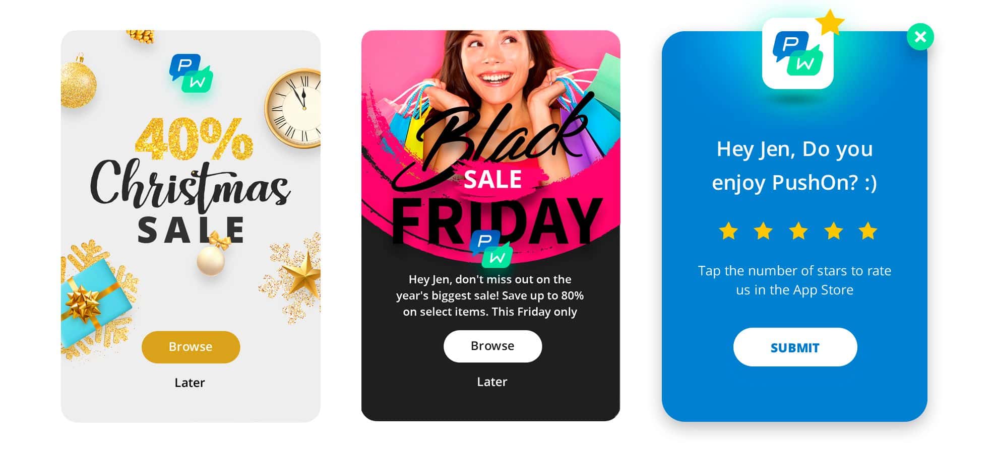 By asking users to leave feedback at their most satisfying moments, you can get a higher position in charts for your app and more downloads. Besides, in-app messages offer you a simple way to know if your customers are actually satisfied with your product/service and can give you ideas for improvement.